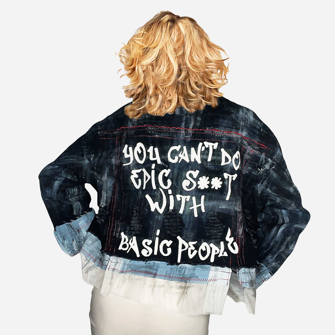 This statement jacket is the perfect way to elevate any outfit, from casual to dressy. the eye-catching details and custom-painted design make it a true conversation piece that will have people asking where you got it.